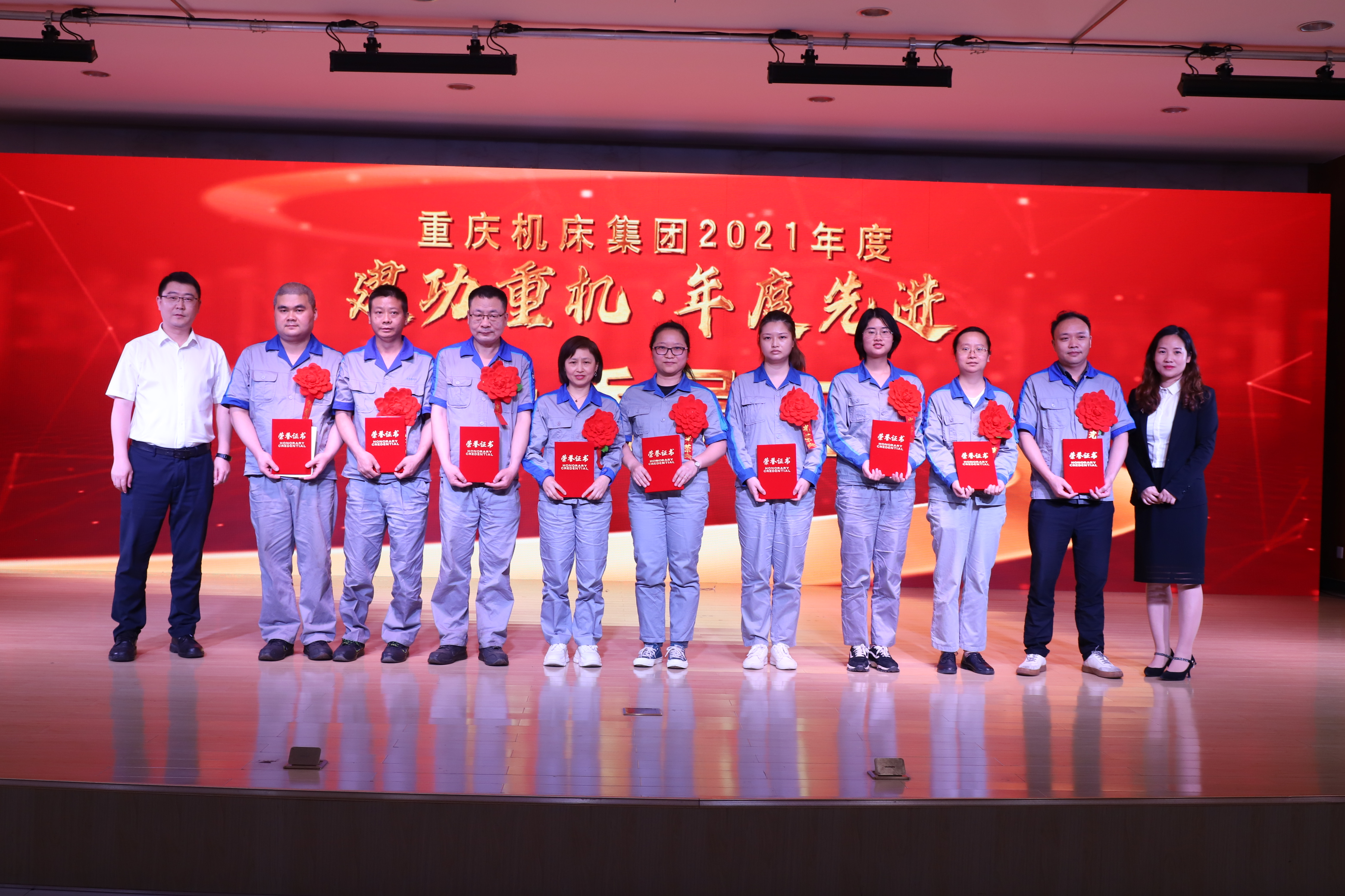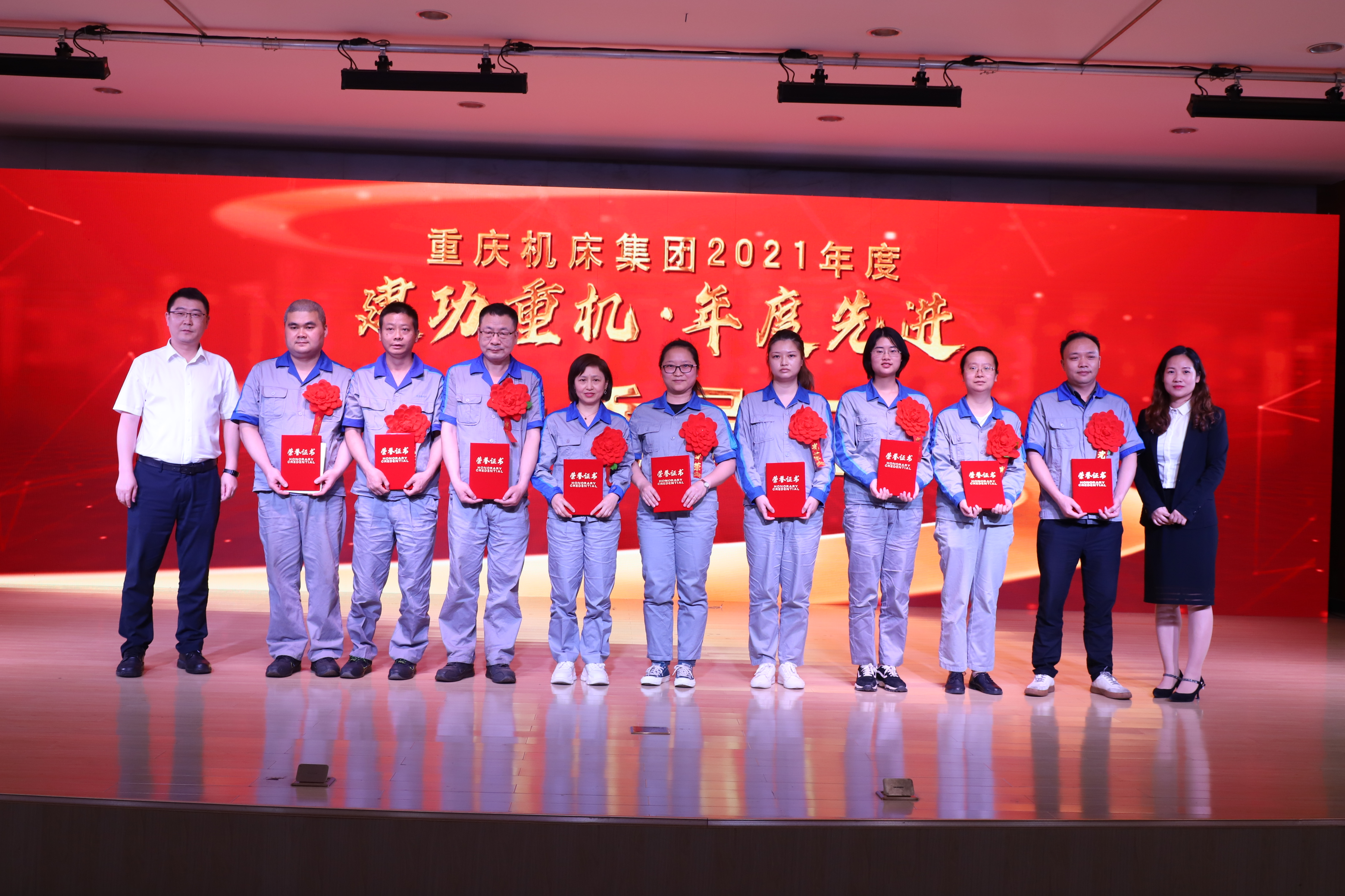 4月29日,在五一国际劳动节即将来临之际,机床集团举办“建功重机•年度先进”颁奖典礼,表彰2021年度涌现出来的4个先进单位、10名标兵、20名优秀员工及6名优秀管理工作者。