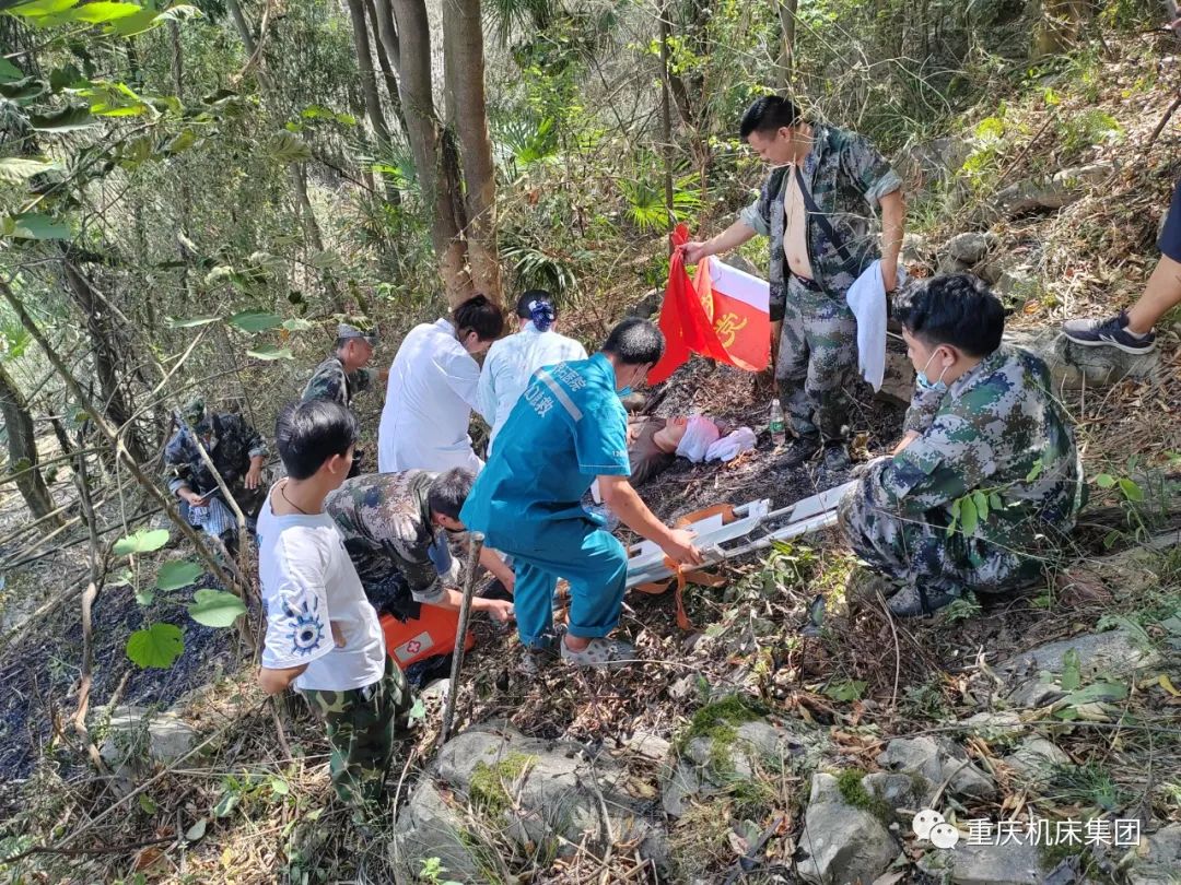 22日晚上风很大,复燃点很多,燃烧过的森林更是凶险,容易摔倒、烫伤。罗欢和他的队友们通宵轮换巡查防止森林复燃,累了就躺在土里和石头上轮流休息一下,稍作休整又继续战斗。由于疫情巴南区几个街道临时管控,新一批的志愿者无法按时轮换,罗欢和他的队友们顶着烈日继续坚守阵地,23日中午12点出现一处较大的复燃点,火点在森林深处,志愿者们有序奔赴复燃点,由于地势凶险一名队友摔倒骨折,等待医疗救援。在扑灭复燃点后,罗欢和队友们在救护人员的帮助下对伤员进行固定,齐心协力抬着担架把伤员送到公路边上的救护车进行救治。罗欢和队友们继续在他们所在的防区进行巡逻灭火直到23日下午4点进行志愿者轮换。
