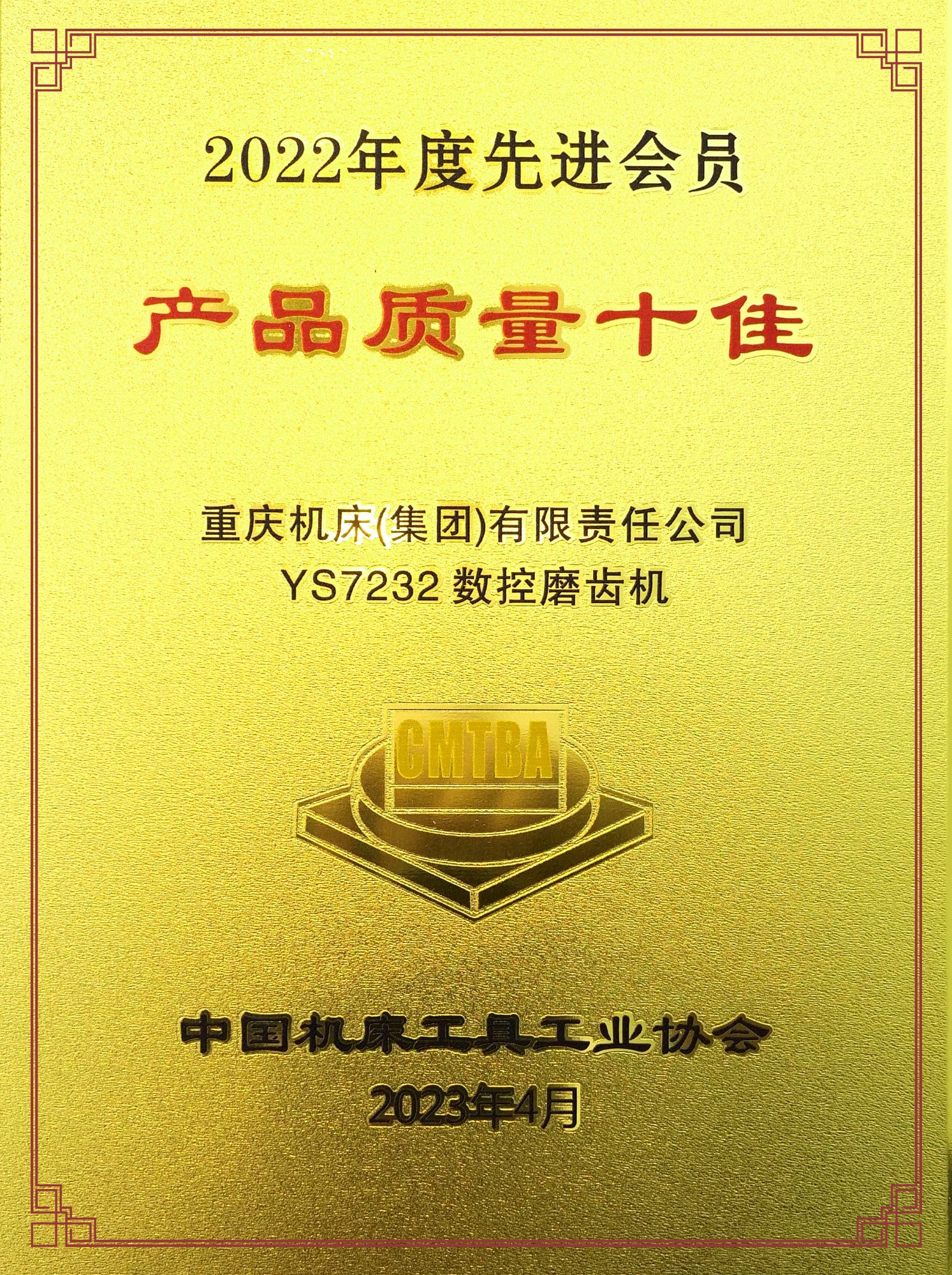 据悉,展会开幕当天下午,主办方中国机床工会协会还举办了盛大的颁奖典礼,重庆机床集团YS7232数控磨齿机获得“产品质量十佳”。